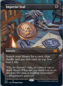 Los Previews anunciados el día de hoy nos trajeron gratas sorpresas, cartas que la comunidad ha pedido por su reimpresión por fin están de vuelta, principalmente Imperial Seal, cuya carta rondaba en por lo menos $7,000.- mxn en su versión más económica, de igual forma, Dockside Extorsionist, una de las cartas más eficientes para jugarse en Commander por fin ha regresado, una carta sumamente escasa que muchos jugadores siempre han deseado en sus mazos.